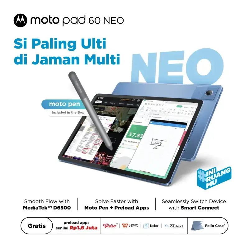 Moto Pad 60 Neo Rilis di Indonesia, Pesaing Infinix XPAD 20 Pro