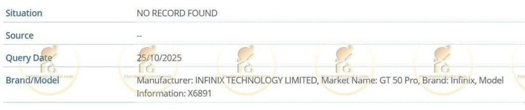 Infinix dikabarkan tengah mempersiapkan smartphone terbarunya dari lini GT Series. Hal ini terungkap setelah perangkat dengan nama Infinix GT 50 Pro dan nomor model X6891 muncul dalam database IMEI, dengan data pencatatan bertanggal 25 Oktober 2025.