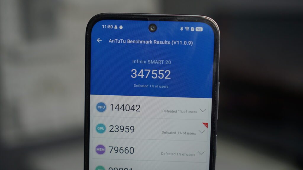 Di atas kertas, performanya memang bukan yang kencang banget. Dari hasil benchmark, skor AnTuTu ada di angka 347 ribuan.